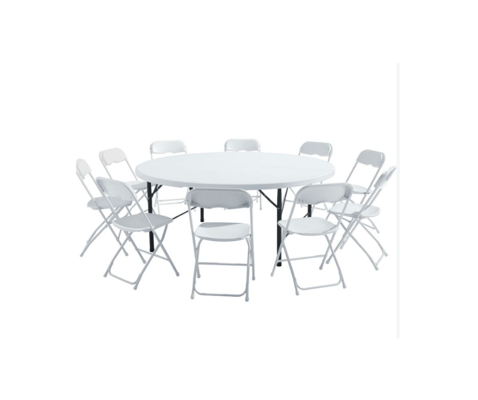 60” Round Plastic Folding Table comfortably sits up to 8 guests and is one of our most popular dining table options.